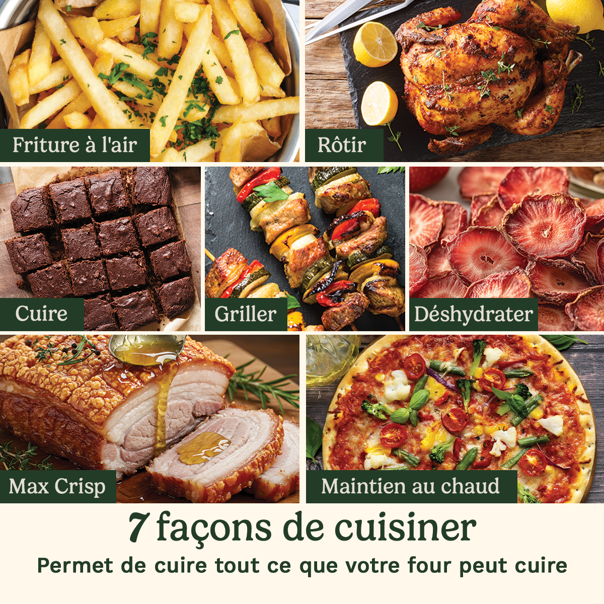 - Sept fonctions de cuisson pour impressionner: Frire à l'air, rôtir, griller, cuire au four, déshydrater, croustiller au maximum ou garder au chaud. Des frites croustillantes aux gâteaux, cette friteuse a la polyvalence nécessaire pour tout faire.