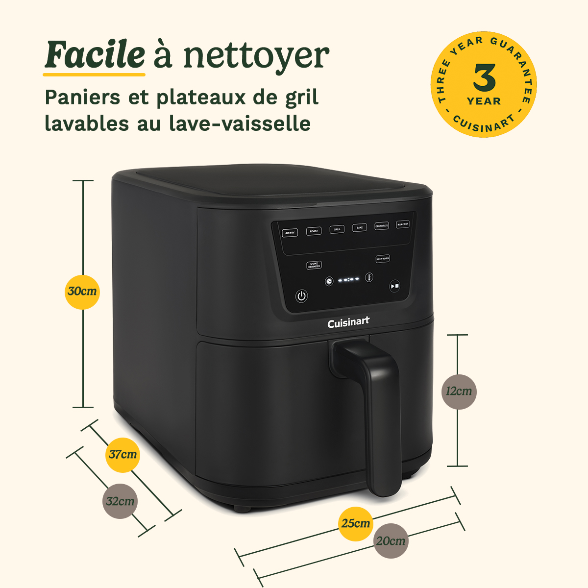 - Nettoyage rapide, grands résultats: Les paniers lavables au lave-vaisselle et la finition antiadhésive facilitent le nettoyage. De plus, la puissance de 2000 W permet de préparer les repas en un clin d'œil et la garantie de 3 ans assure la tranquillité d'esprit, repas après repas.
