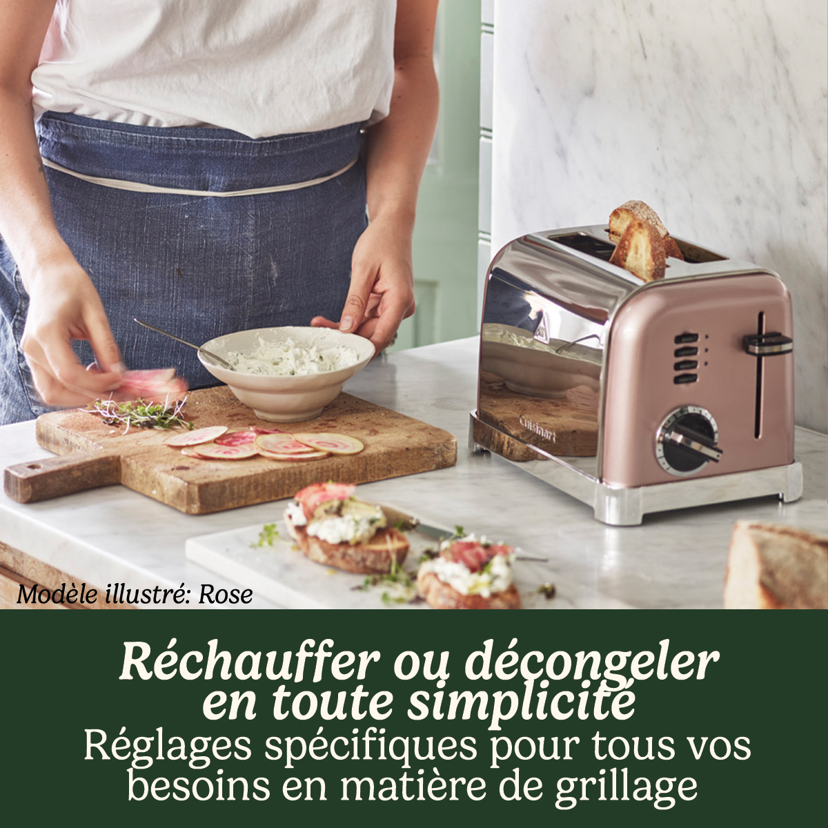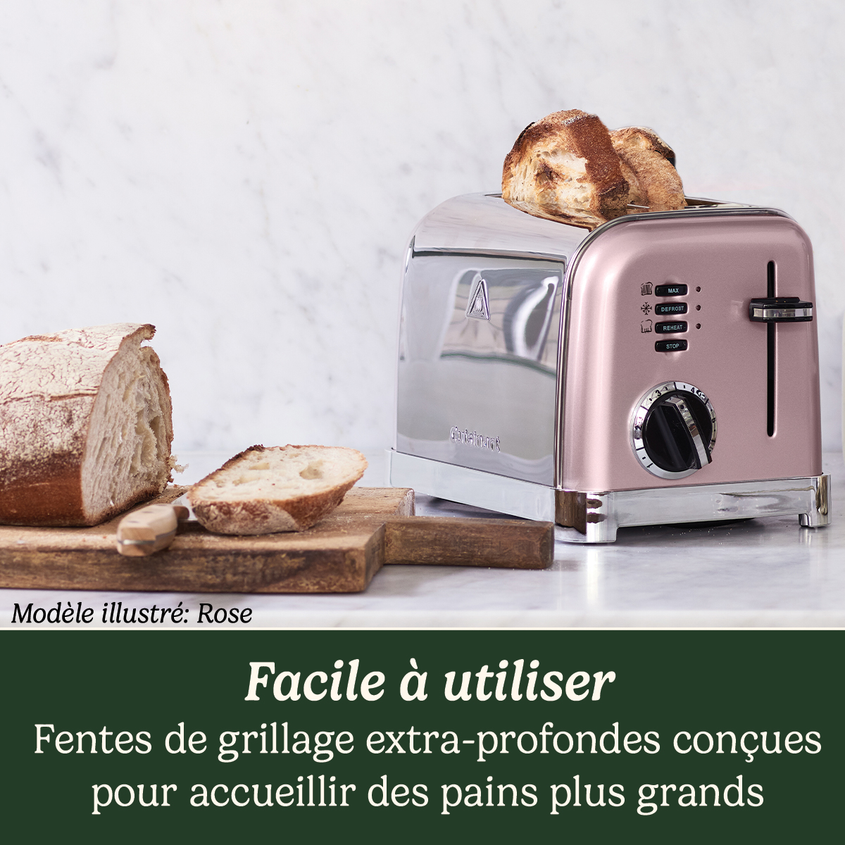 Notre grille-pain 2 tranches est magnifiquement conçu avec sa couleur gris perle et ses détails en acier inoxydable poli pour convenir à tous les styles de cuisine.