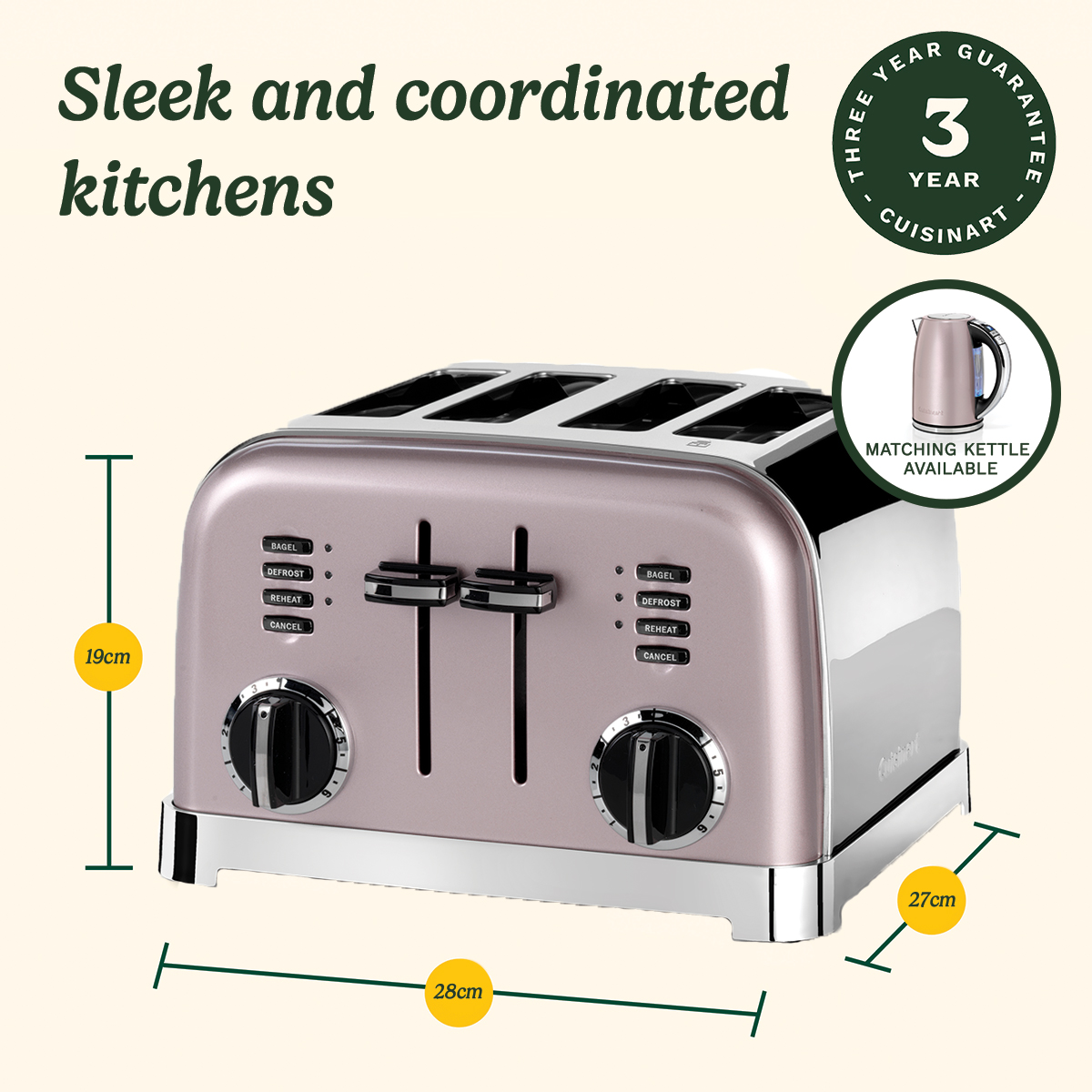Deze stijlvolle roestvrijstalen broodrooster voor 4 sneetjes maakt deel uit van onze Style Collection en zal een subtiel vleugje kleur toevoegen aan uw keuken.
