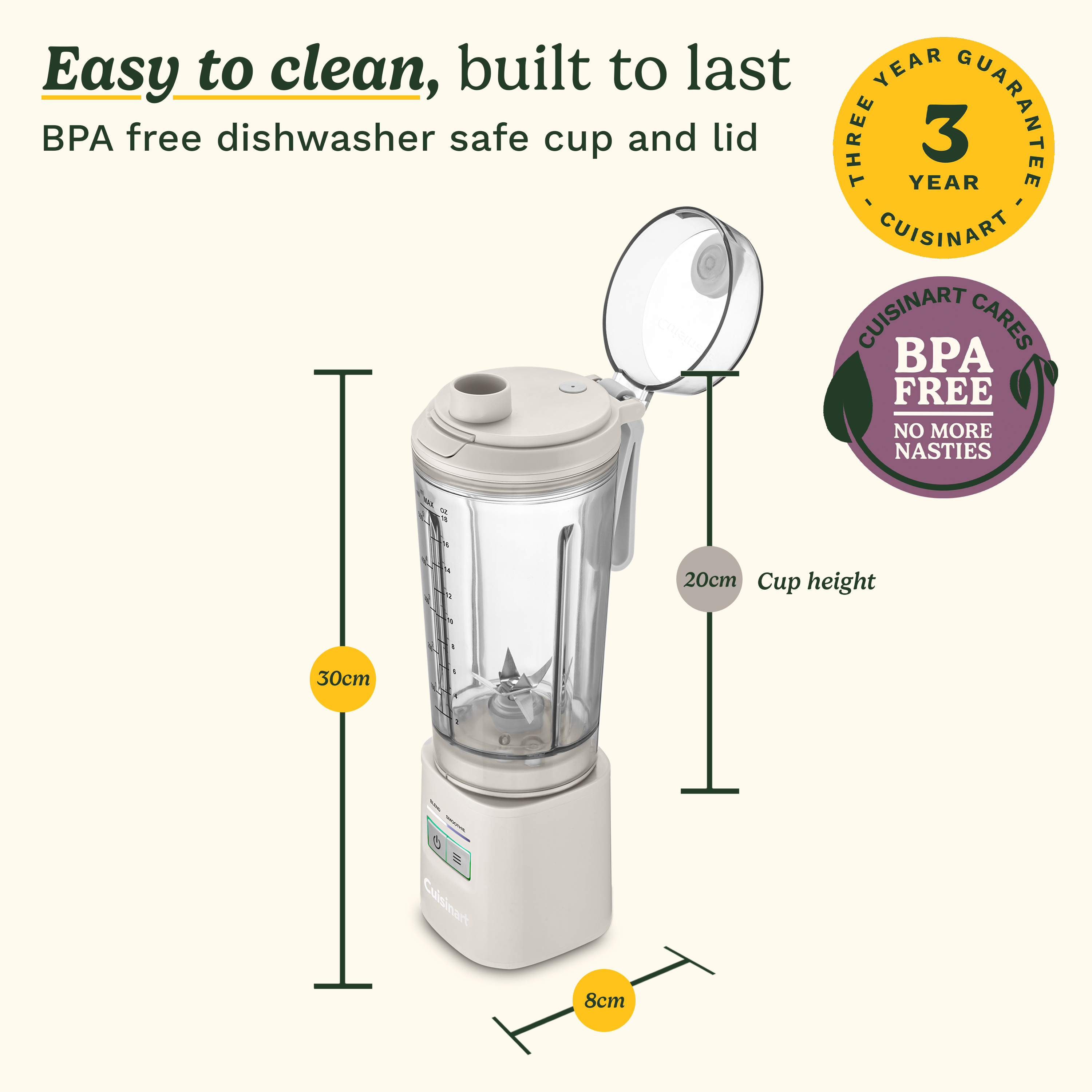 - Clean Blending, Zero Hassle: Enjoy safe, healthy blends with BPA-free materials and no harmful chemicals. When you're done, cleanup is a breeze - just pop the cup and lid in the dishwasher and get on with your day.
